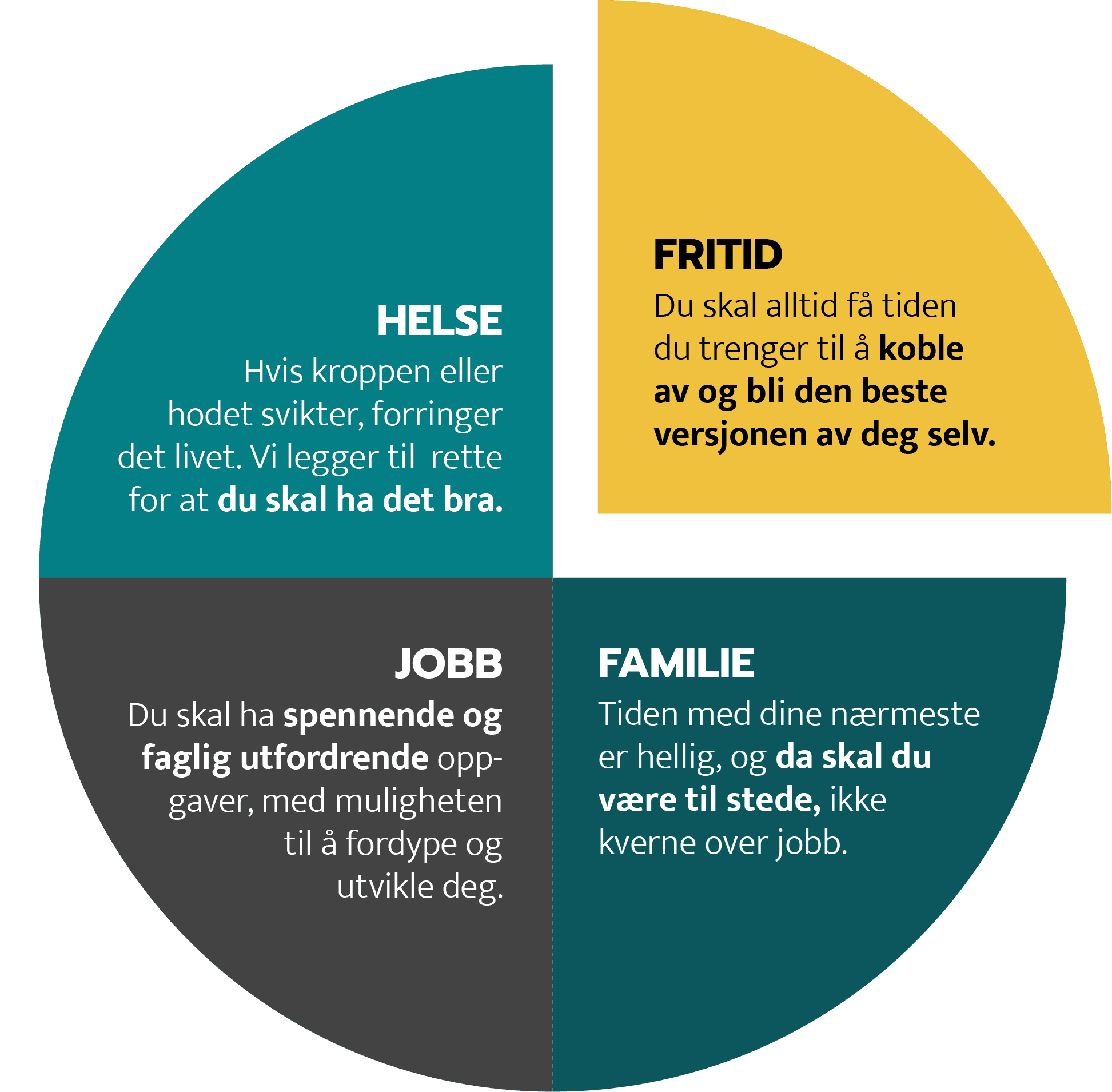 En sunn kropp og et sunt hode er viktig for å kunne nyte verdens beste jobb som regnskapsfører, kollegaer og de nære ting på hjemmebane. Derfor har vi god helseforsikring, felles trening i arbeidstiden, og gjør alt vi kan for at du skal ha det bra.